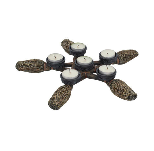 CANDLE HOLDER || BROOMSTICK PENTAGRAM TEA LIGHT