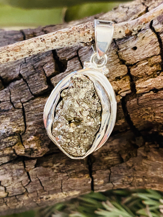 PYRITE DRUZY PENDANT - 925 STERLING SILVER
