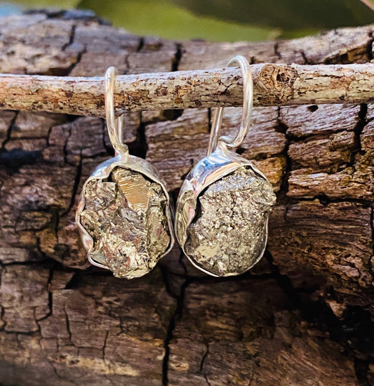 PYRITE DRUZY EARRINGS - 925 STERLING SILVER