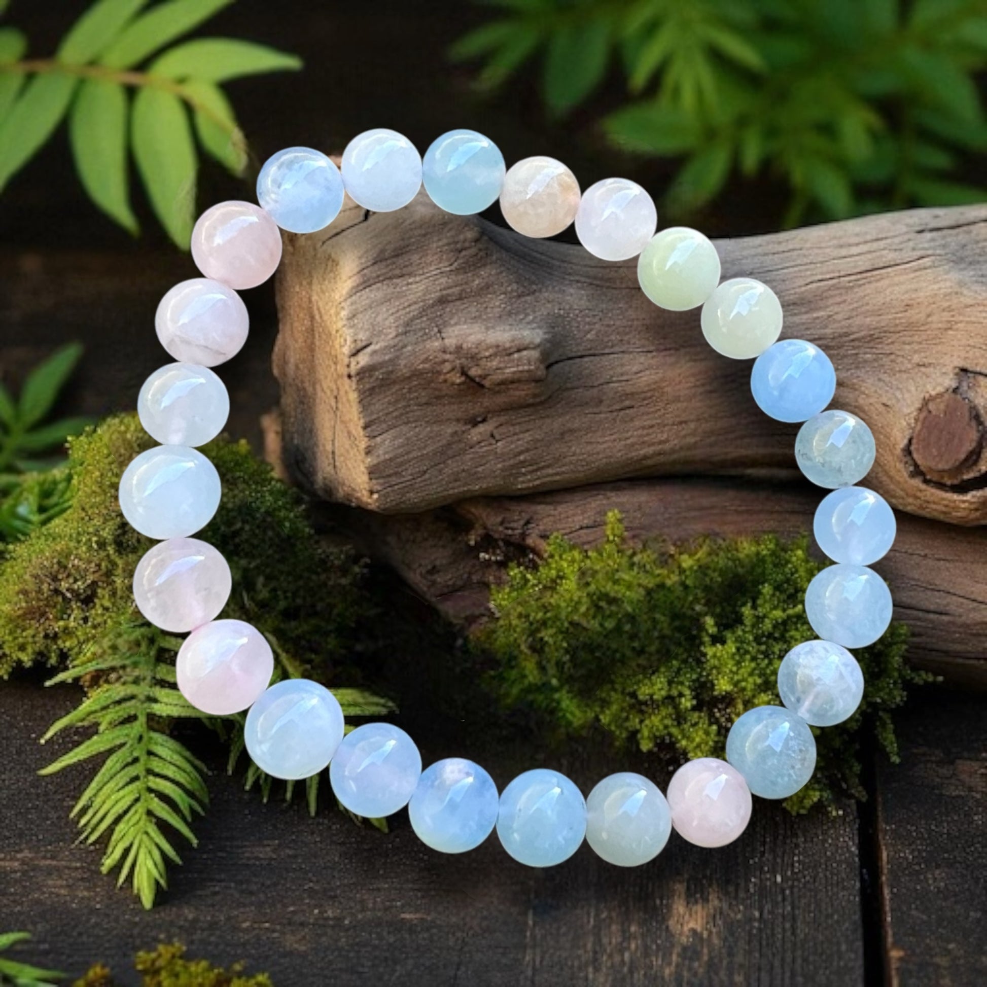 NEW || This delicate Morganite bracelet radiates the soft, nurturing energy of divine love and gentle heart awakening. With its tender shades of blush pink and peach, Morganite is a stone of emotional renewal, compassion, and soul-deep connection. It supports healing from past wounds and encourages you to open your heart with trust, grace, and courage.