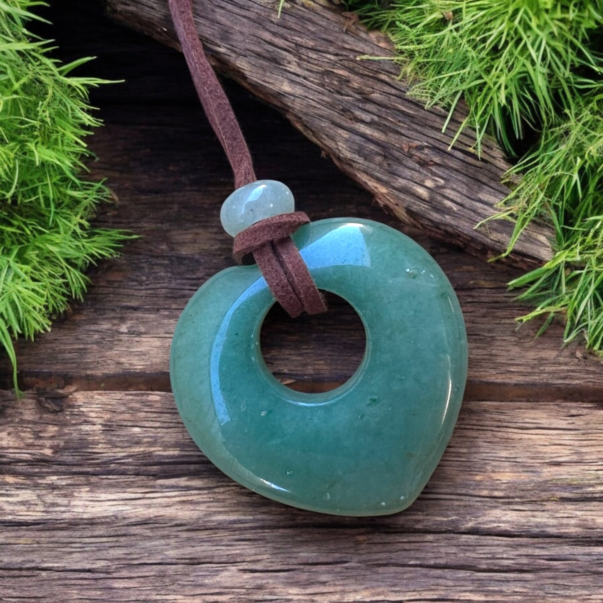 This Green Aventurine heart pendant supports emotional healing, growth, and the flow of abundance. Known as the stone of opportunity, Green Aventurine encourages optimism, confidence, and heart-led action. The heart shape enhances its nurturing qualities, making it a perfect talisman for self-love, compassion, and balanced relationships.