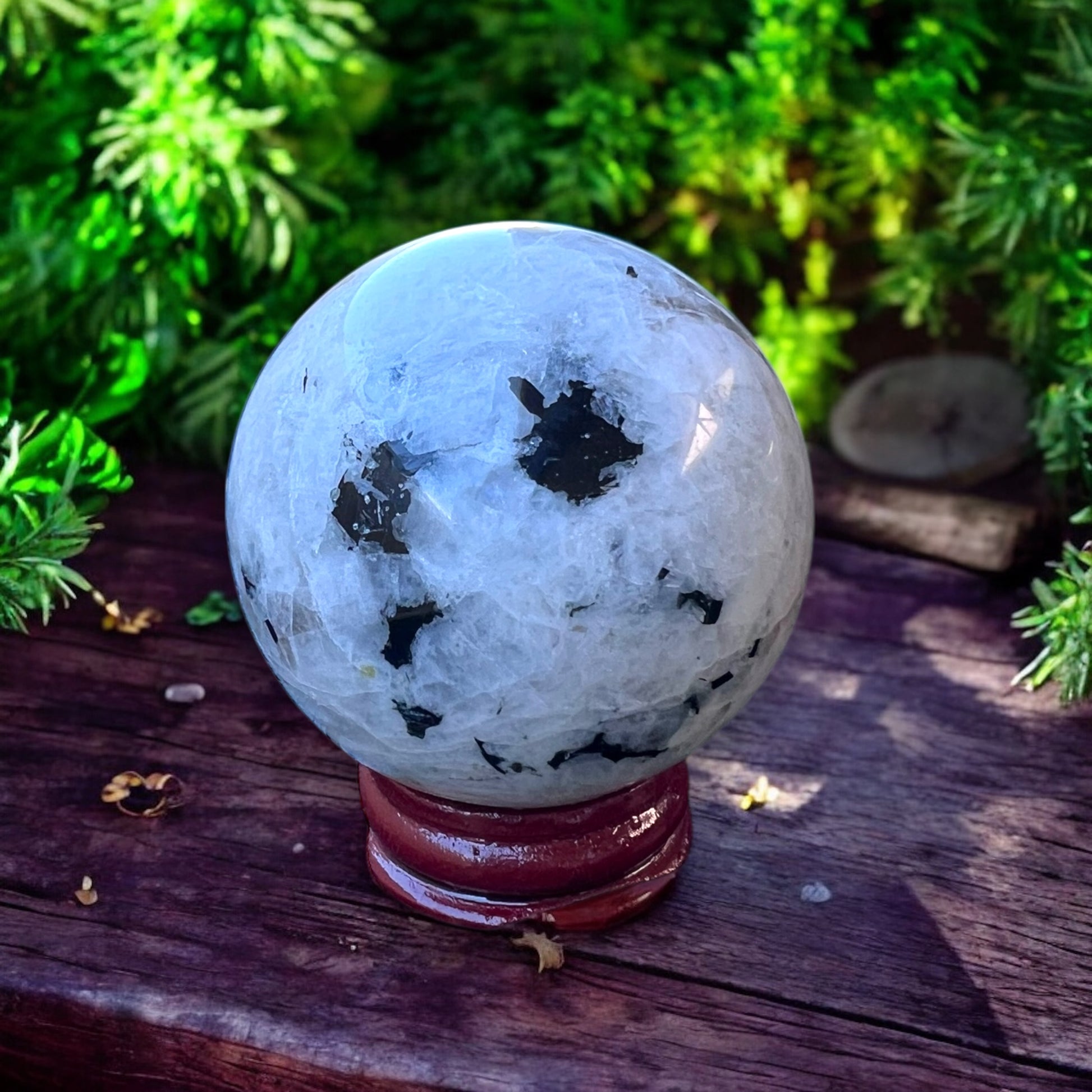 If you’ve been feeling emotionally raw, uncertain, or energetically off-balance, Rainbow Moonstone is like a cosmic exhale for your soul. This luminous sphere holds the sacred rhythm of the Moon, gently guiding you back to your inner knowing, especially during times of change or emotional overwhelm.