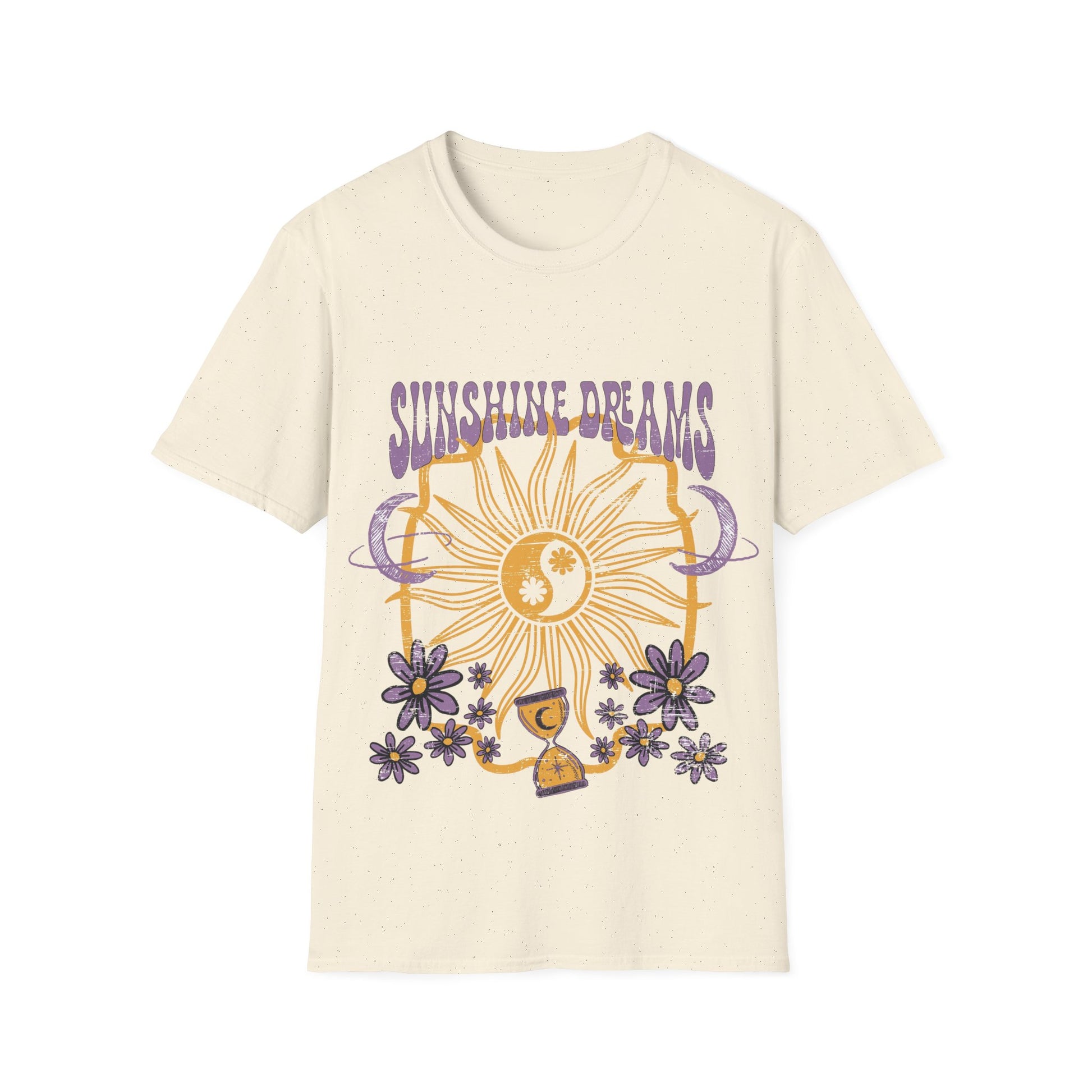 The Sunshine Dreams unisex softstyle tee is made from 100% ring-spun cotton and feels like a warm hug from the universe (4.5 oz/yd²). With its relaxed fit and classic crew neckline, it’s perfect for laid-back adventures, beachy daydreams, or manifesting magic under the sun.