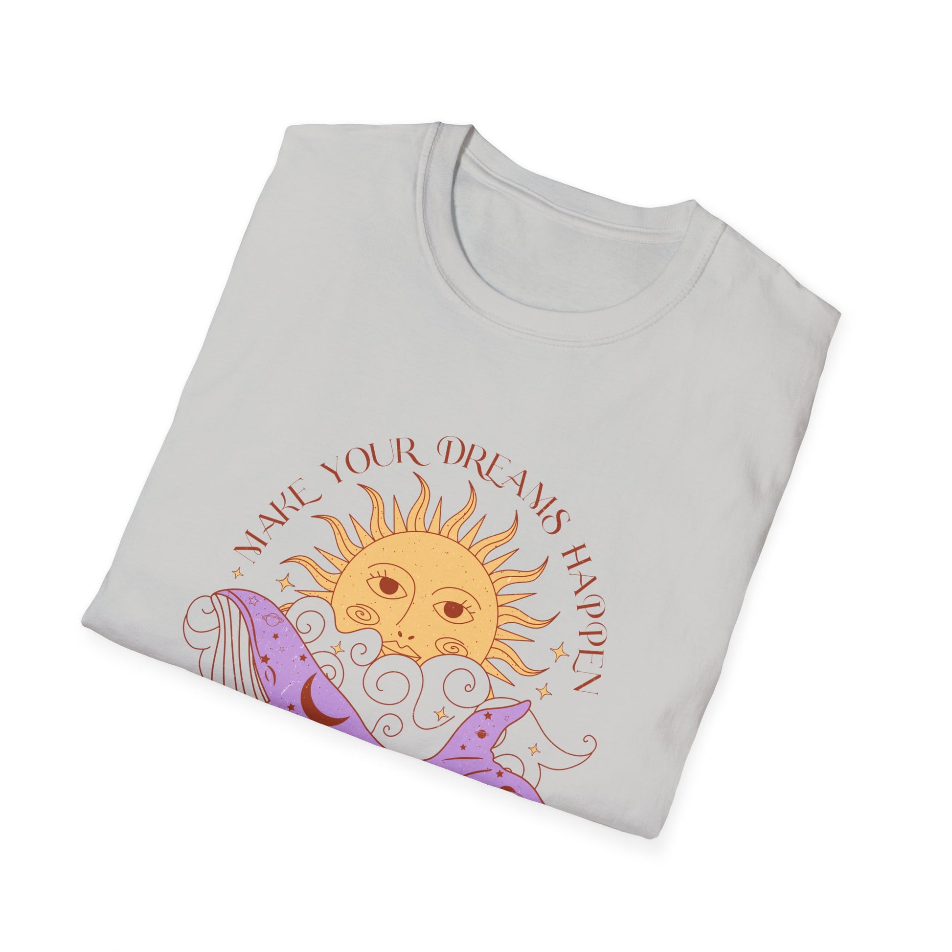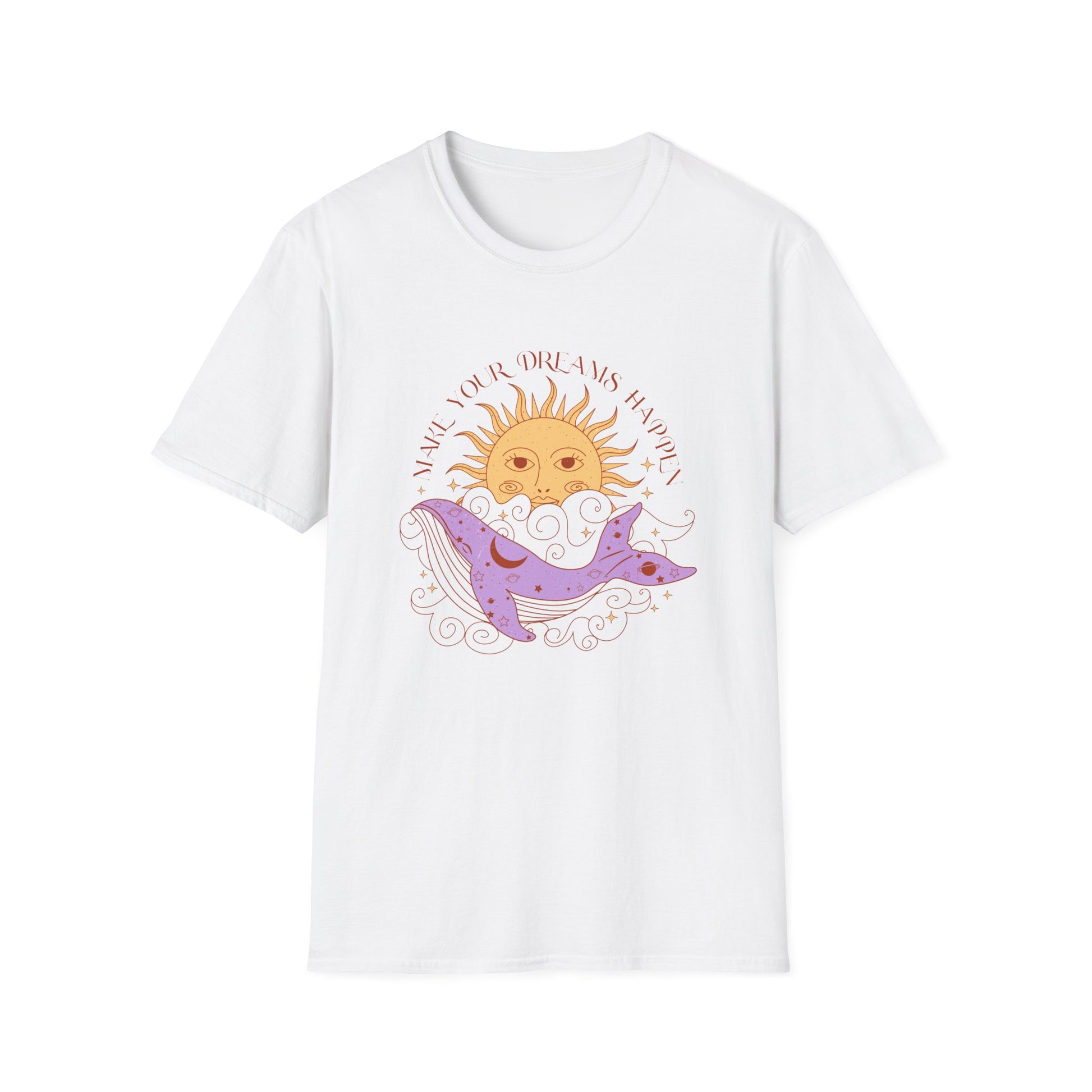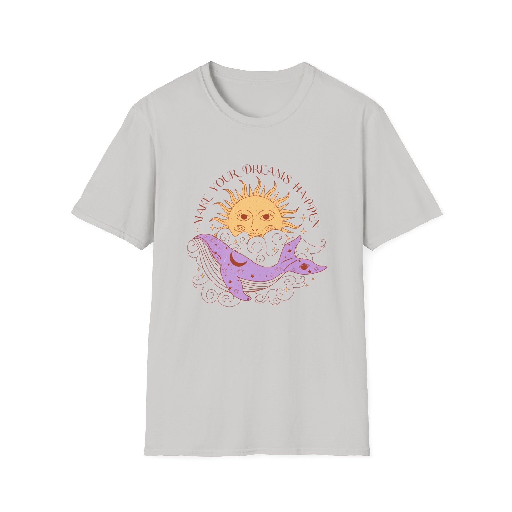 Featuring a majestic whale beneath a radiant sun, the Make Your Dreams Happen tee is your daily nudge from the universe to trust the journey and dive deep into your purpose. Made from 100% ring-spun cotton and soft as sea foam (4.5 oz/yd²), this unisex softstyle tee blends comfort with cosmic inspiration.