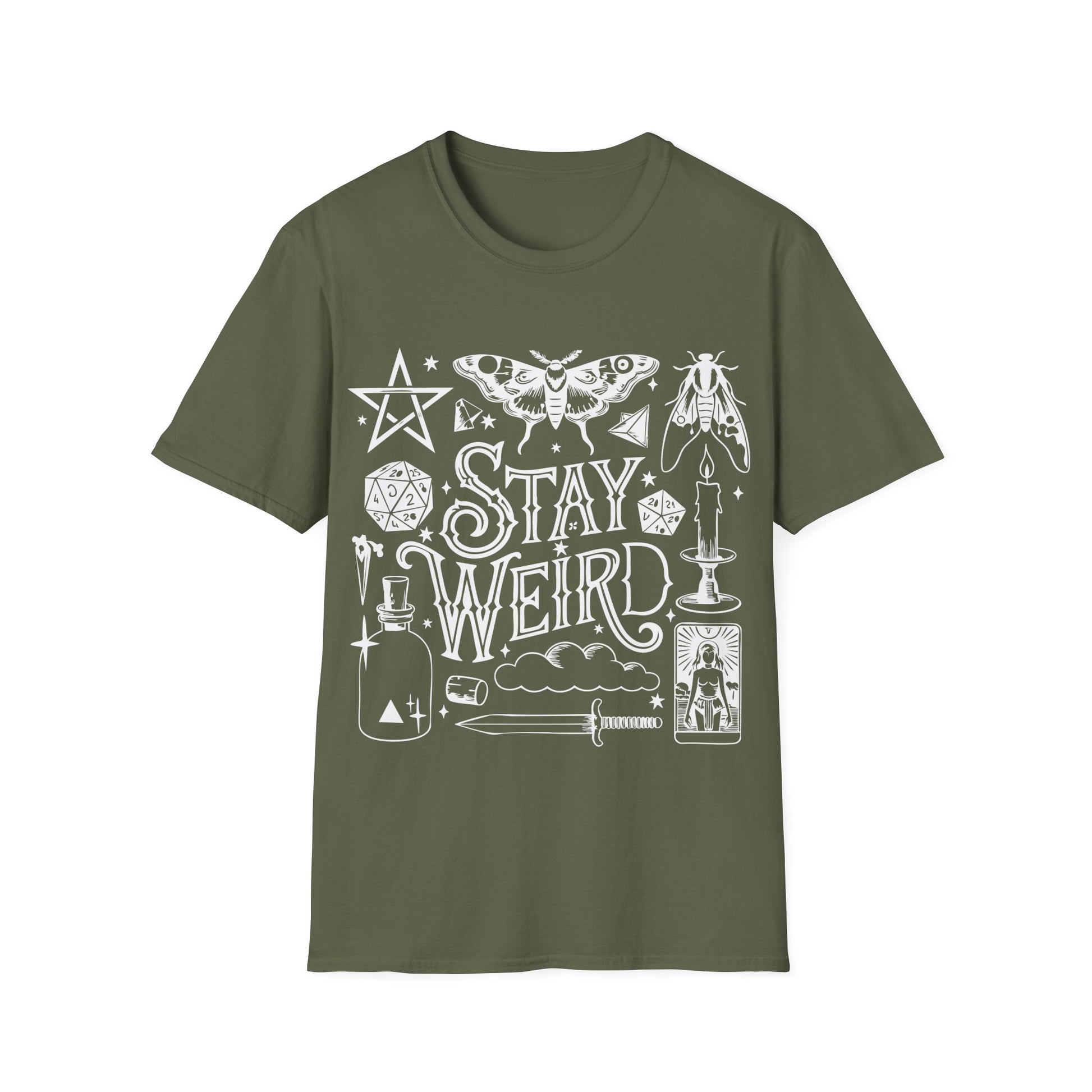 The Stay Weird unisex softstyle tee is crafted from 100% ring-spun cotton and feels as soft as a midnight ritual (4.5 oz/yd²). With a classic crew neck and relaxed fit, it’s perfect for tarot nights, spellwork, or simply making your own rules in a world that craves conformity.