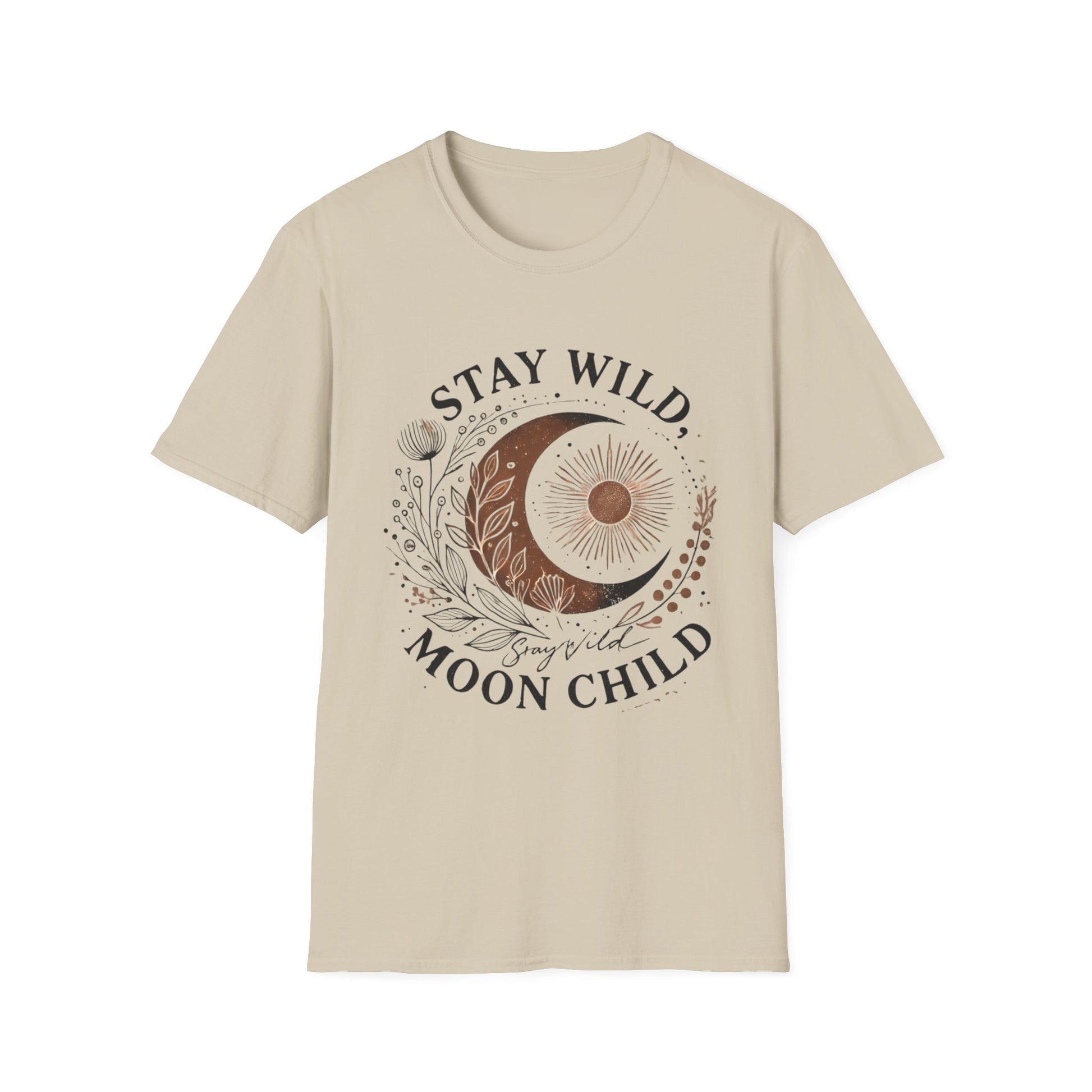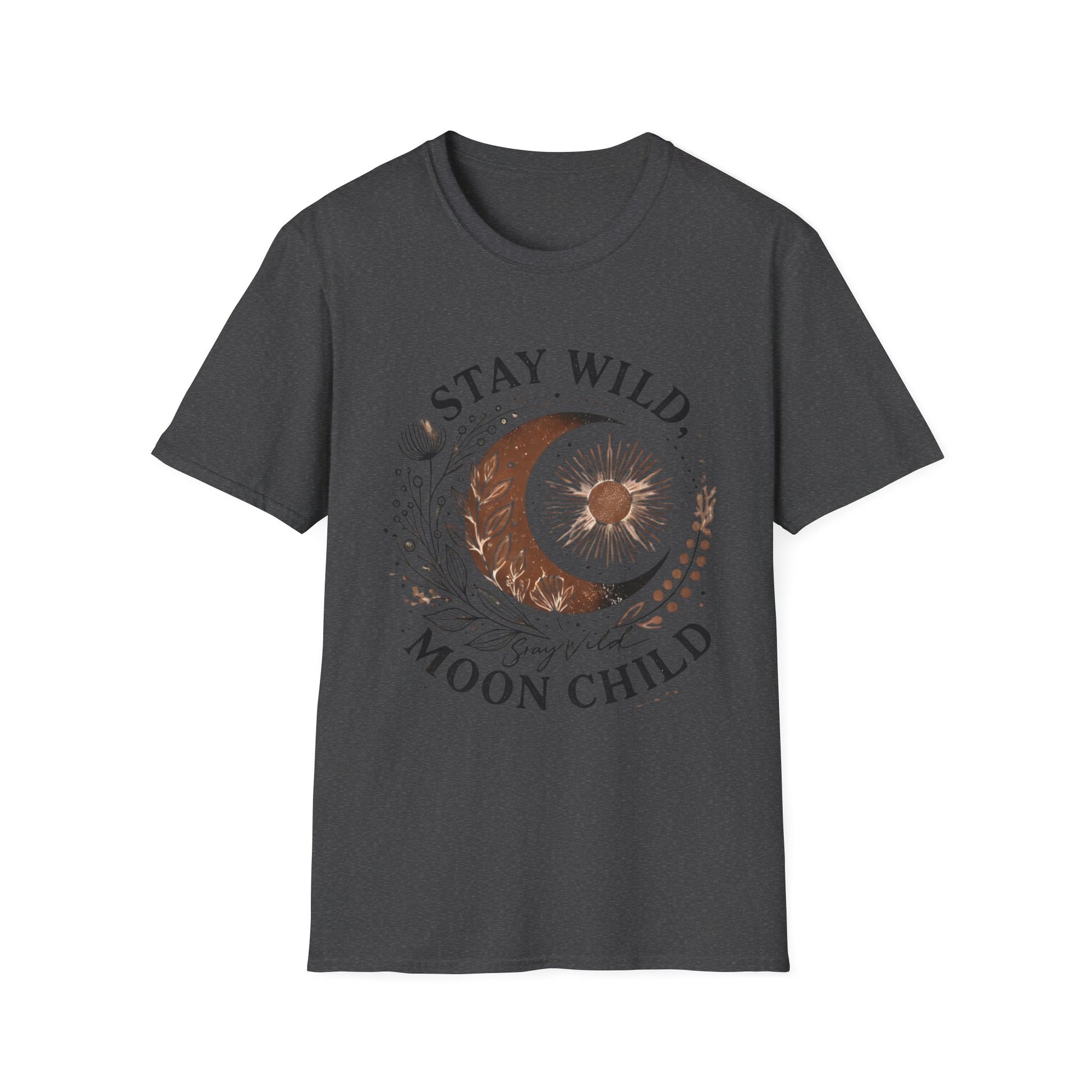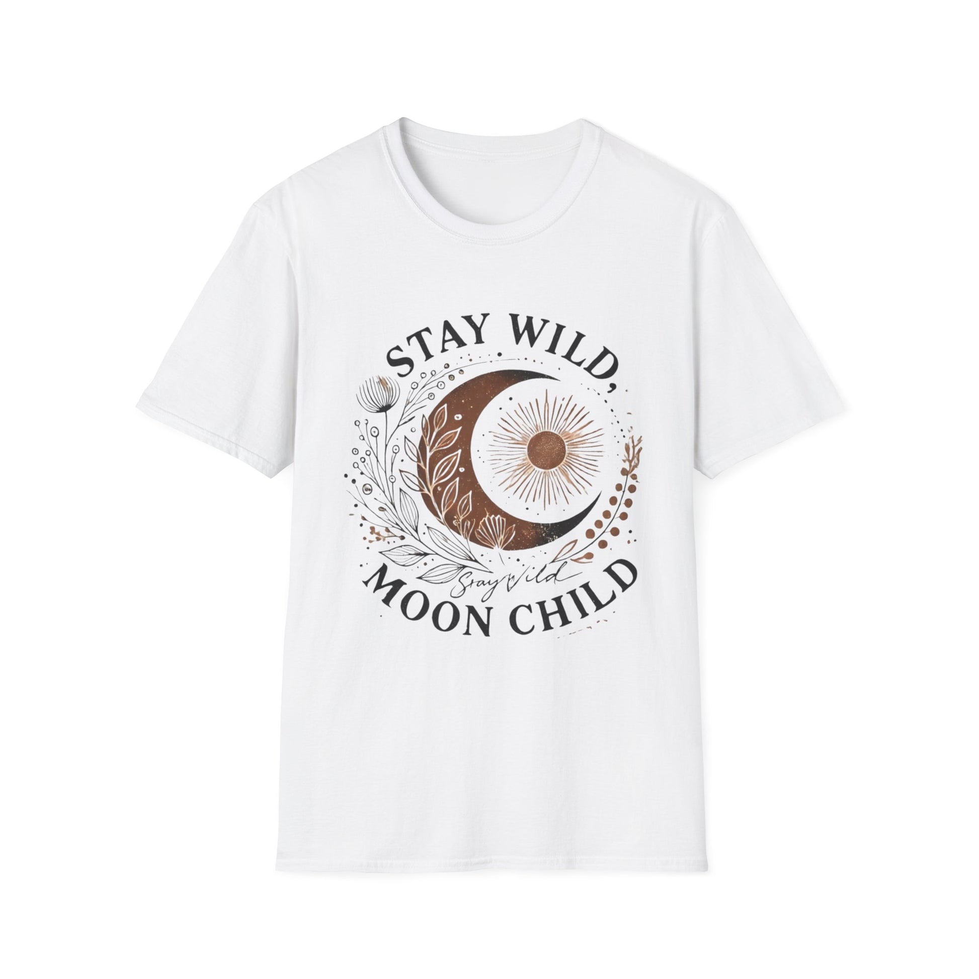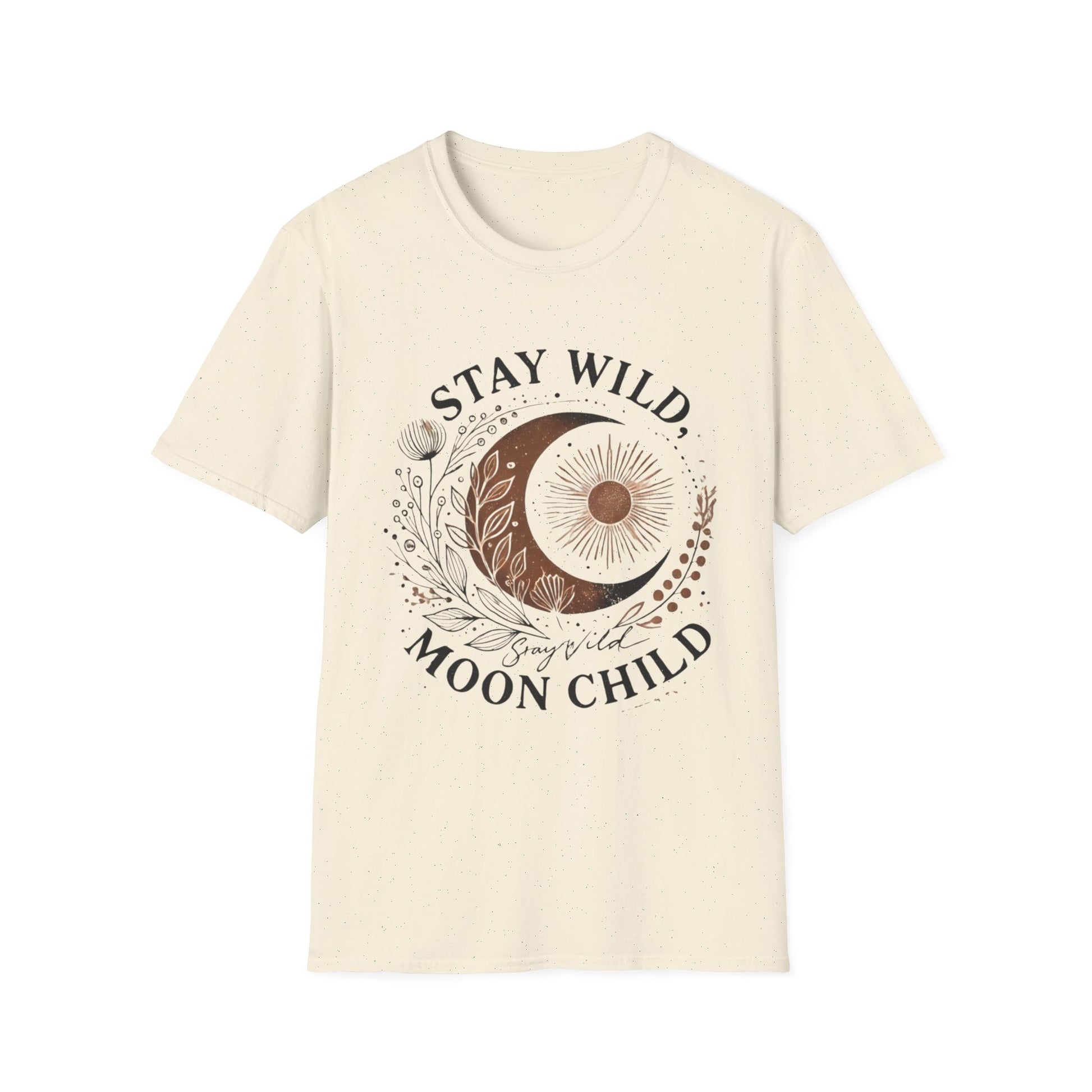 The Stay Wild, Moon Child unisex softstyle tee is made from 100% ring-spun cotton and feels like moonlight on your skin (4.5 oz/yd²). With a relaxed fit and classic crew neckline, it’s perfect for moonlit musings, stargazing nights, or dancing barefoot under the stars.