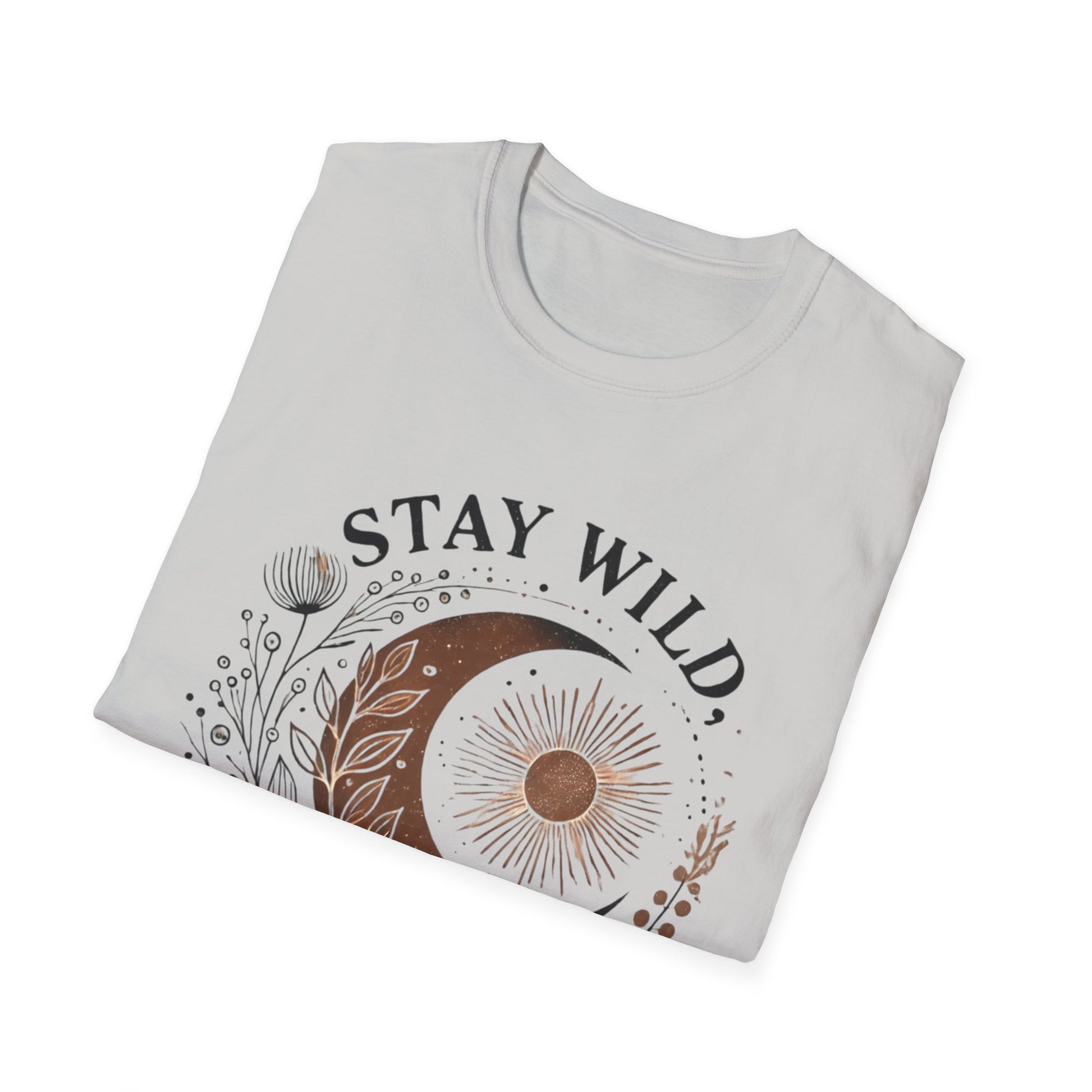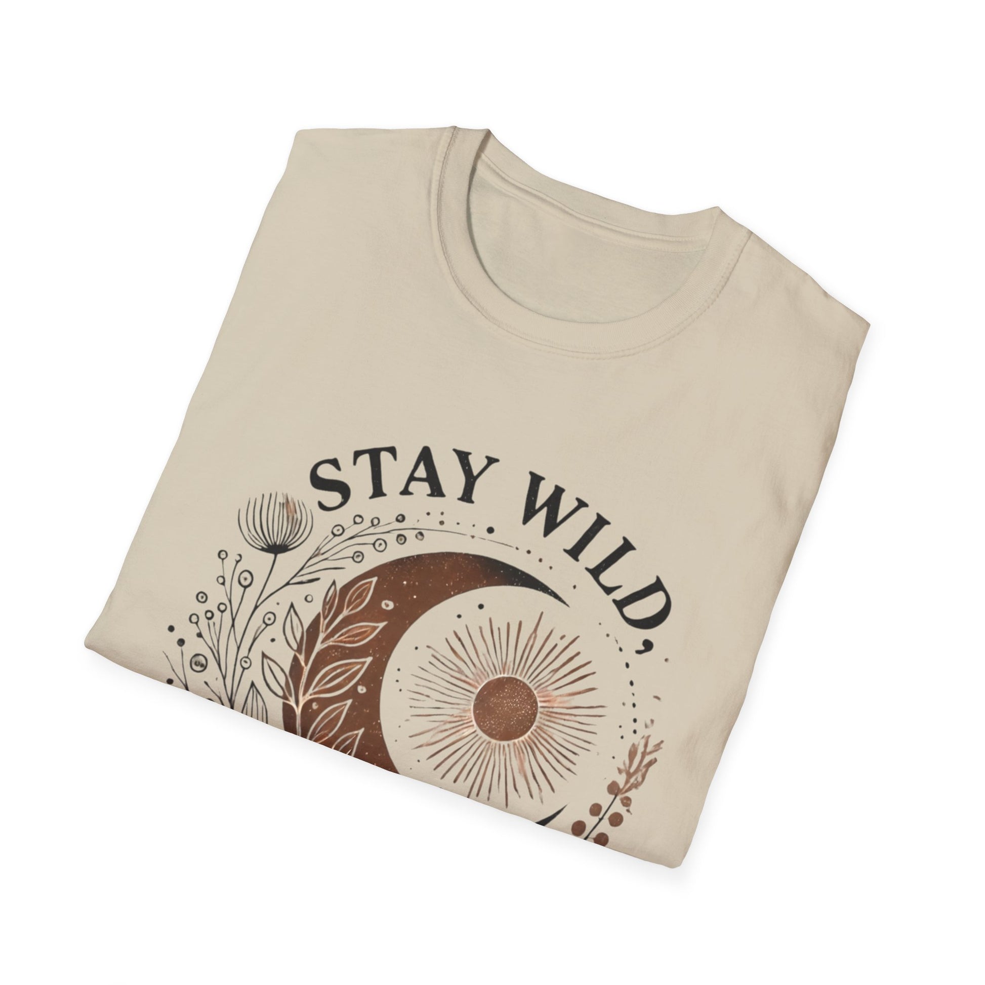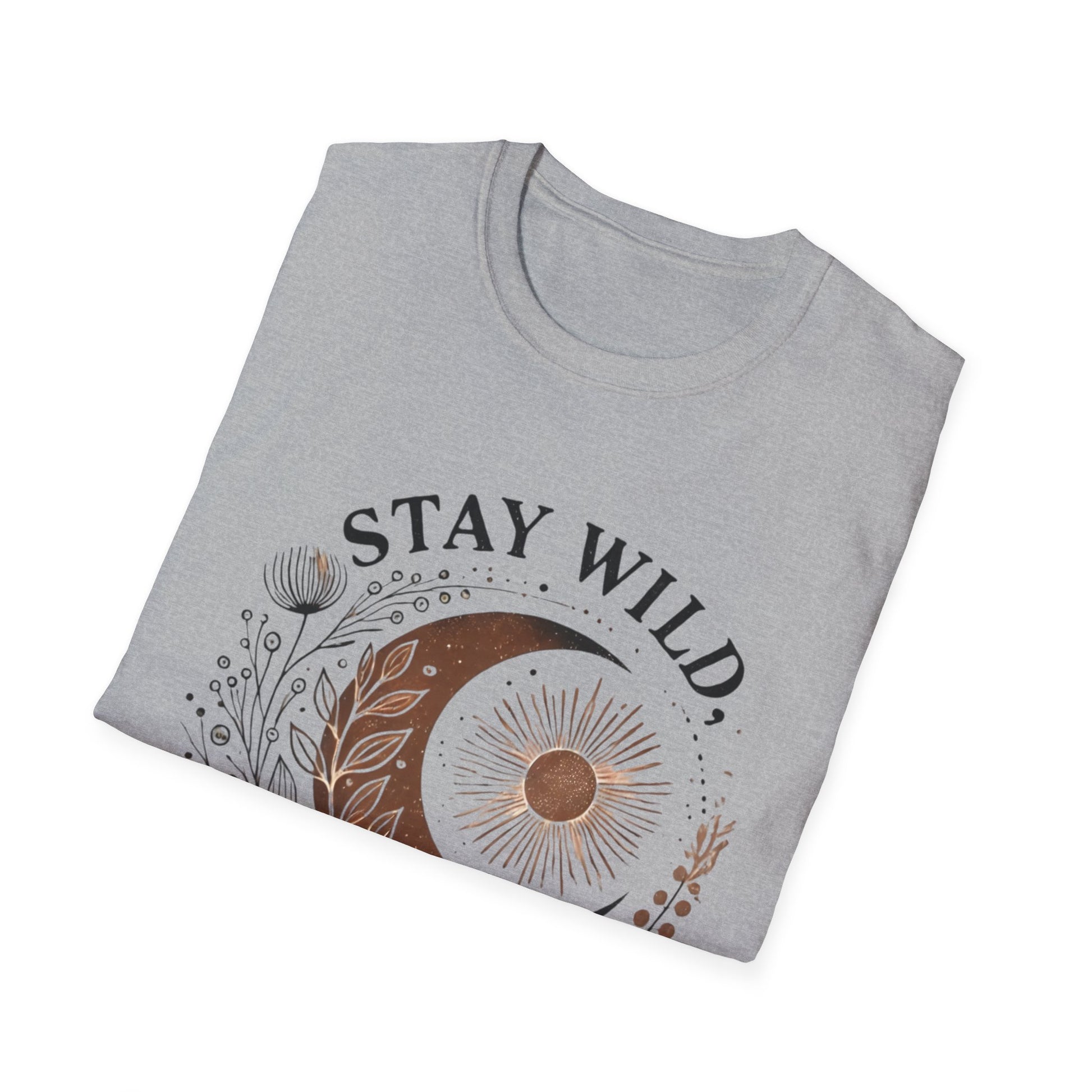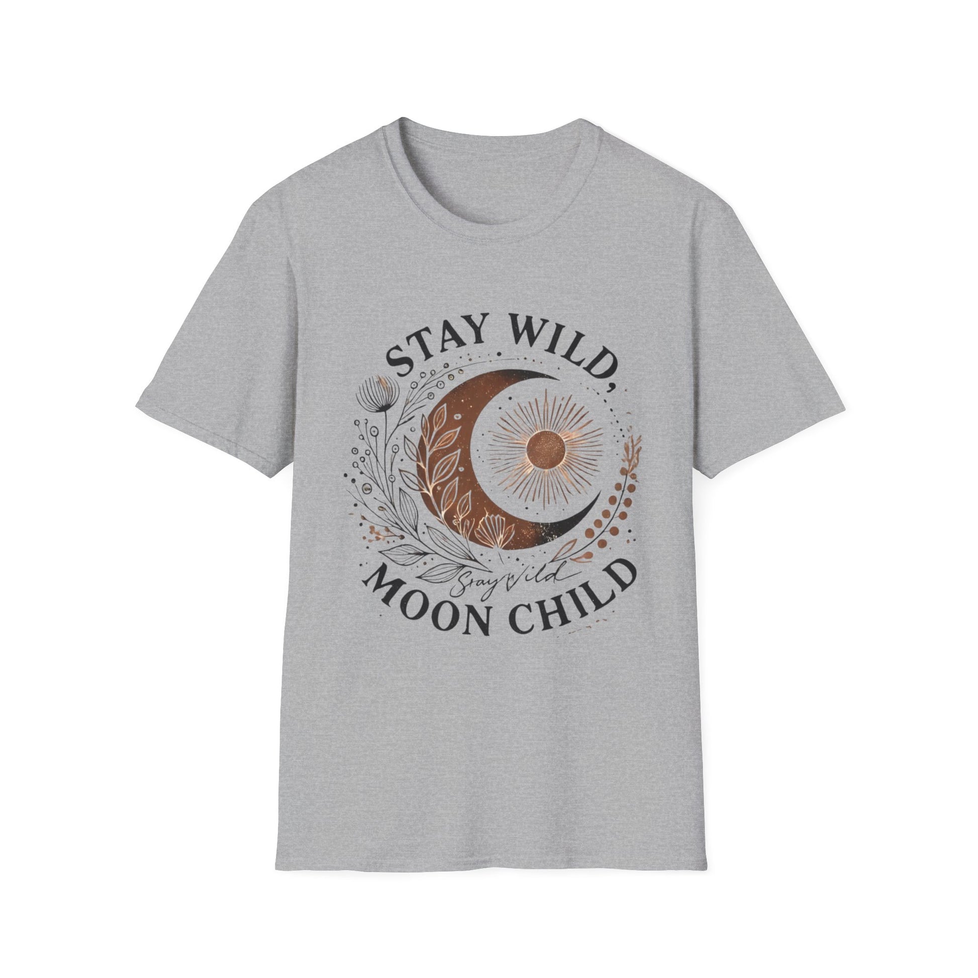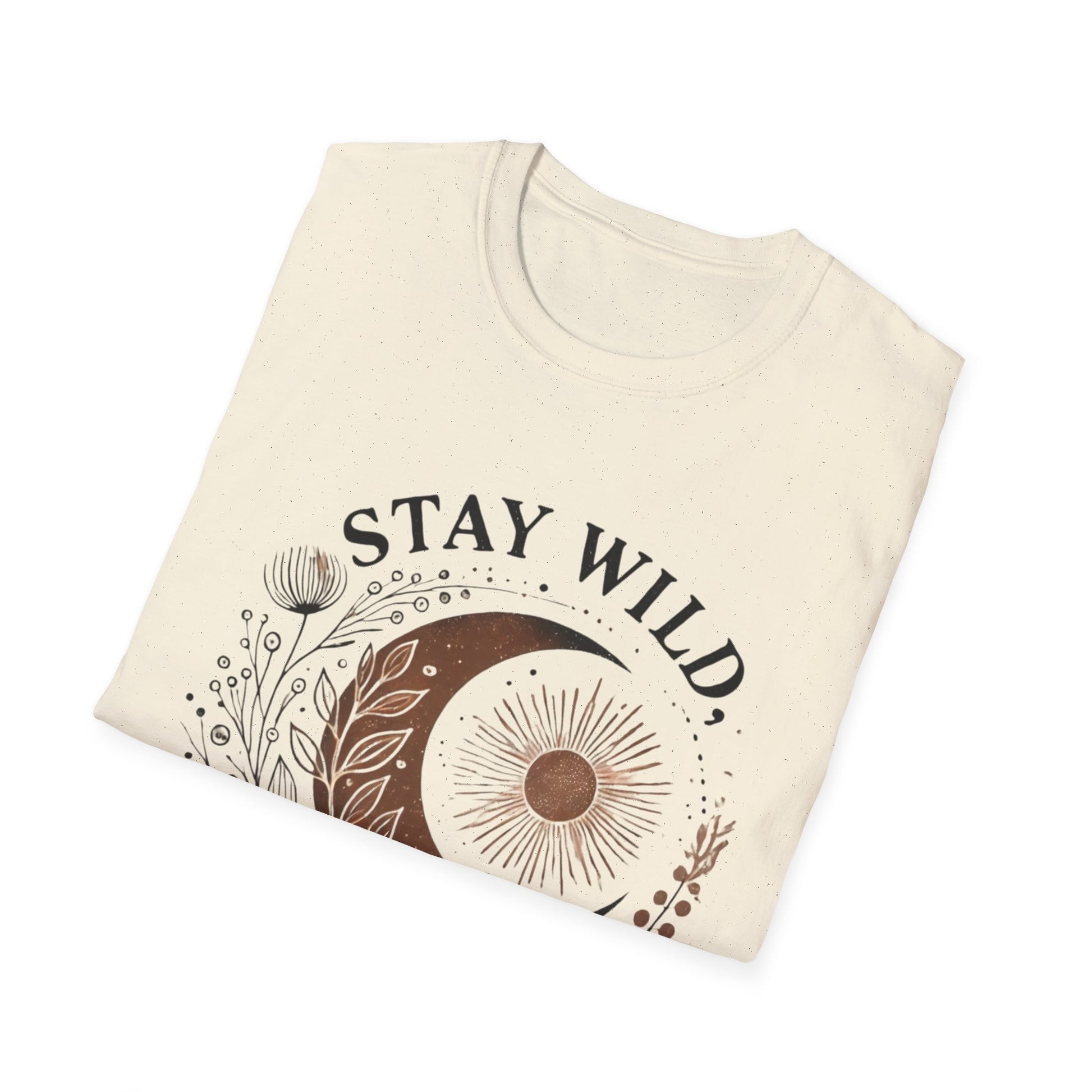 The Stay Wild, Moon Child unisex softstyle tee is made from 100% ring-spun cotton and feels like moonlight on your skin (4.5 oz/yd²). With a relaxed fit and classic crew neckline, it’s perfect for moonlit musings, stargazing nights, or dancing barefoot under the stars.