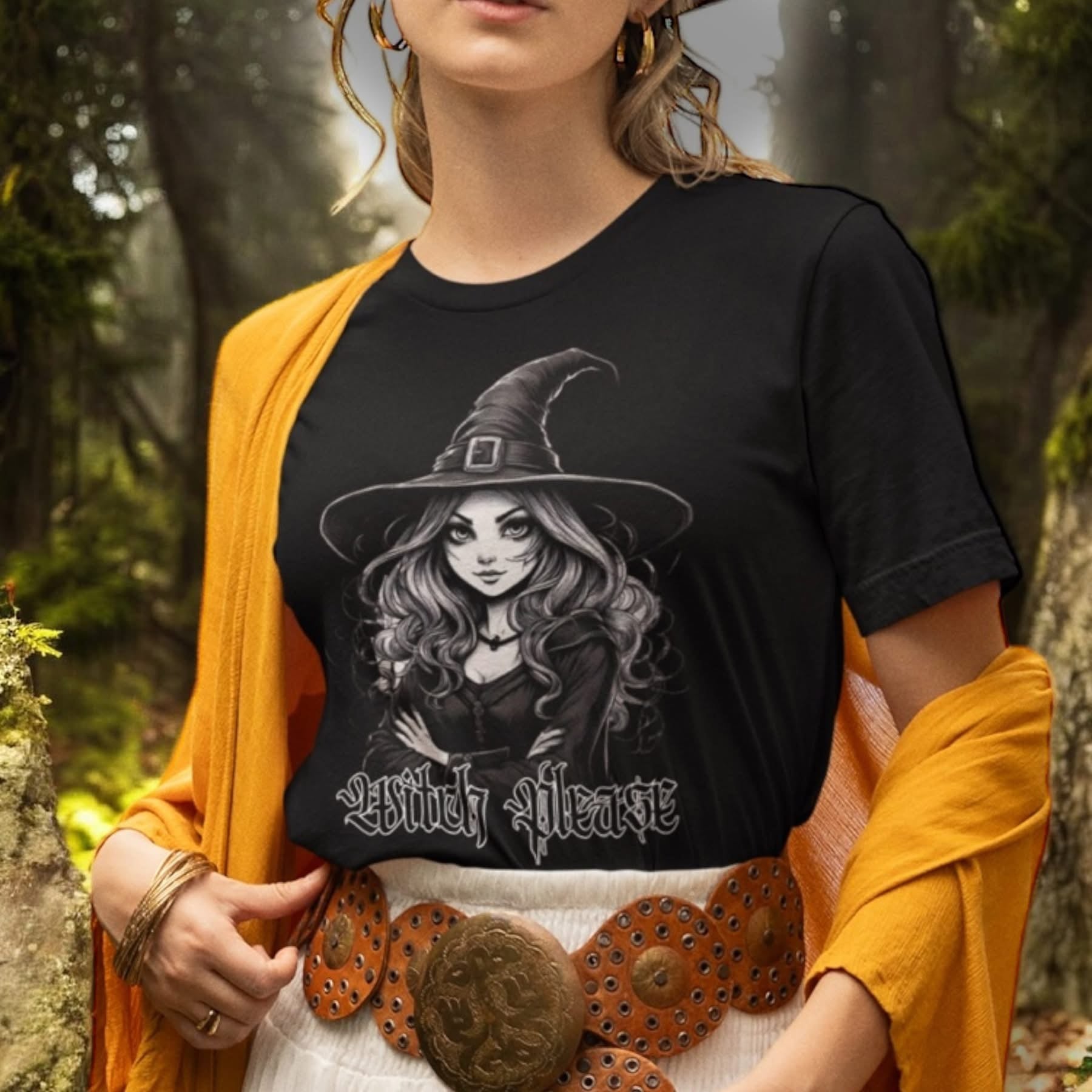 Featuring a witch design and that iconic phrase—Witch Please—this tee lets the world know you're not to be trifled with (unless they want to end up in a hex). Made from 100% ring-spun cotton and soft enough for potion naps or ritual prep (4.5 oz/yd²), it’s as comfy as it is sassy.